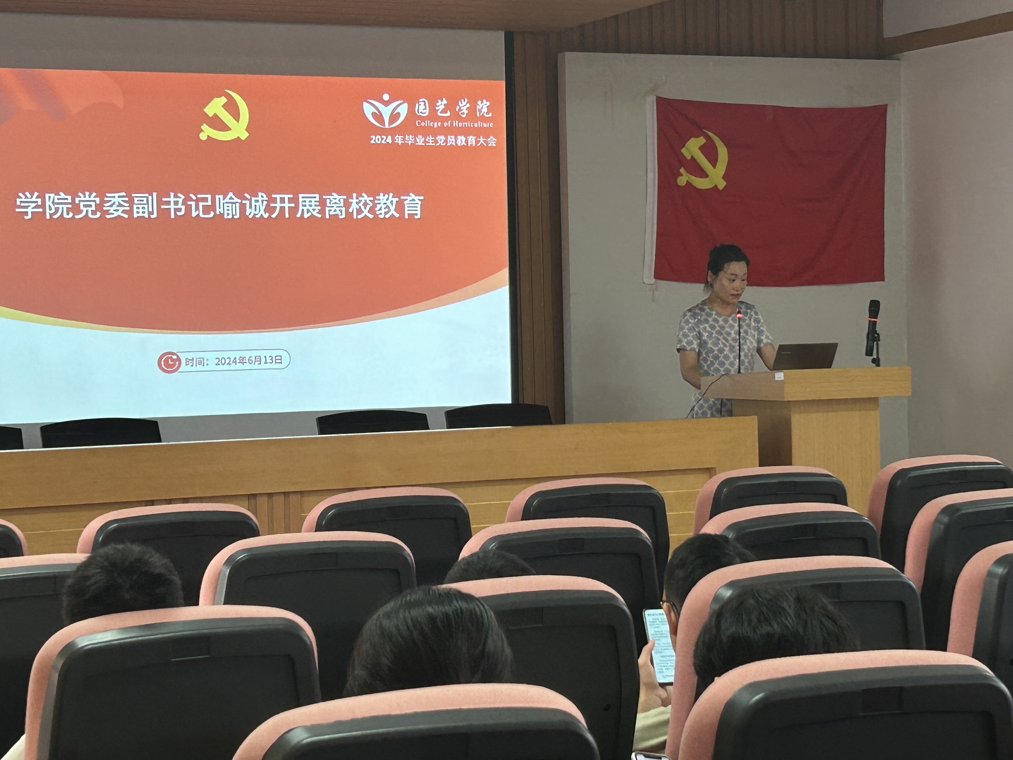会上,喻诚首先以《青春献党、学纪守规、砥砺前行》为题为毕业生党员讲授党纪教育专题党课,她从“坚定理想,用信念领航青春;勤于学习,用本领出彩青春;勇于实践,用作为擦亮青春;严守纪律规矩,不负青春韶华”四个方面引导广大毕业生党员强化遵守纪律的政治自觉、思想自觉和行动自觉,争做“有理想、敢担当、能吃苦、肯奋斗”的新时代好青年。此外,她详细讲述毕业生党员离校和就业工作的注意事项,希望大家在文明离校过程中和走向社会后,都能努力发挥好党员的先锋模范作用。
