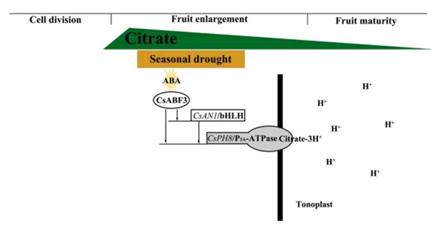夏秋季节性干旱调控柑橘果实柠檬酸积累的工作模型