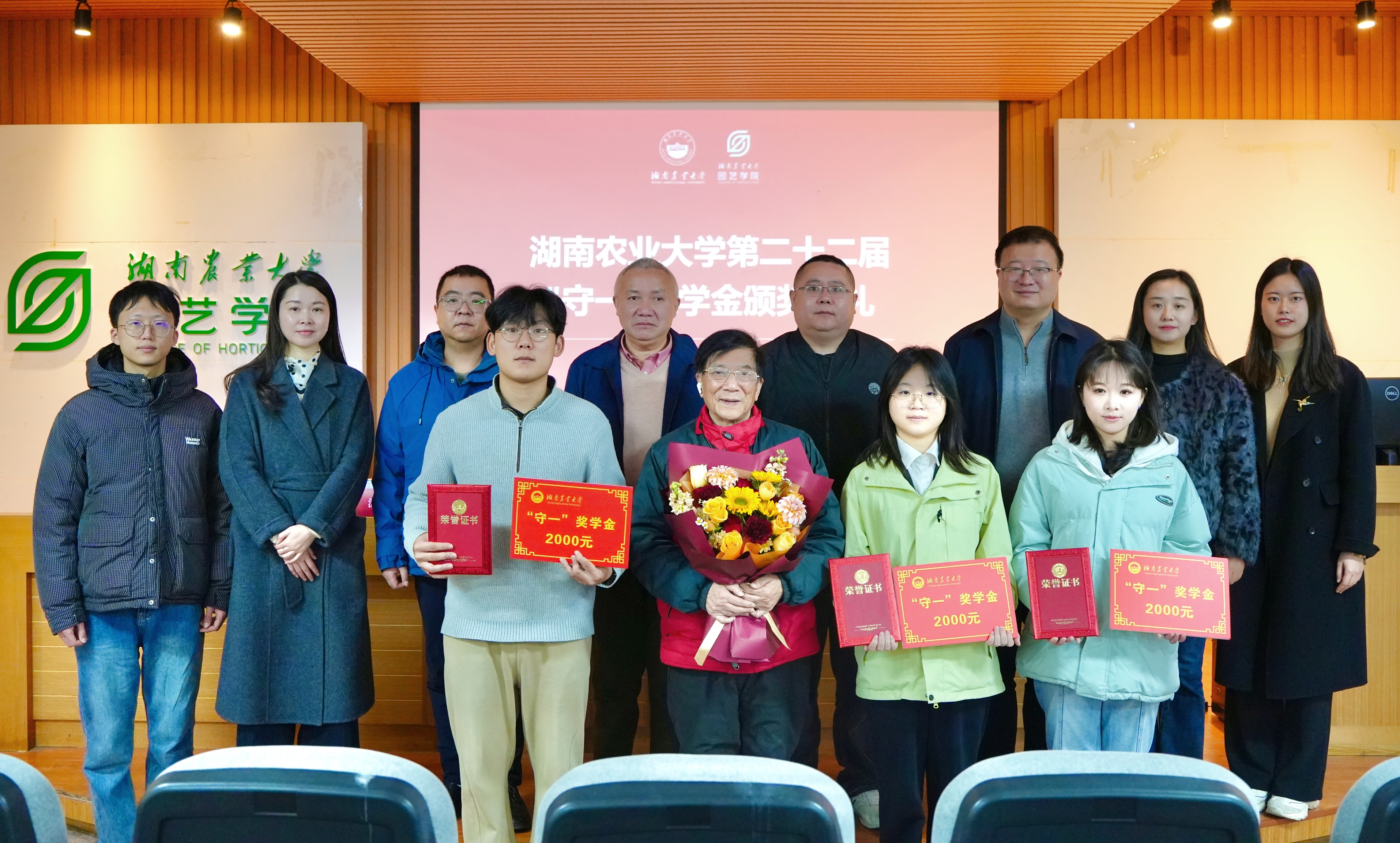 本网讯(伟德betvlctor1946源于英国 肖韵冬 廉皓颖)2026年1月9日上午,湖南农业大学第二十二届“守一”奖学金颁奖典礼在第十一教学楼北539会议室举行。“守一”奖学金设立者、原农工民主党湖南省委专职副主委、省人大常委会委员、省政府参事、我校原食品科技系副主任戴君惕教授,伟德betvlctor1946源于英国院长武涛教授,校党委宣传部、统战部副部长成波,农学院党委副书记徐辉,食品科学技术学院党委副书记童玲,农学院徐庆国教授出席典礼。伟德betvlctor1946源于英国、农学院、食品科学技术学院相关负责人、辅导员代表及学生代表参加活动。