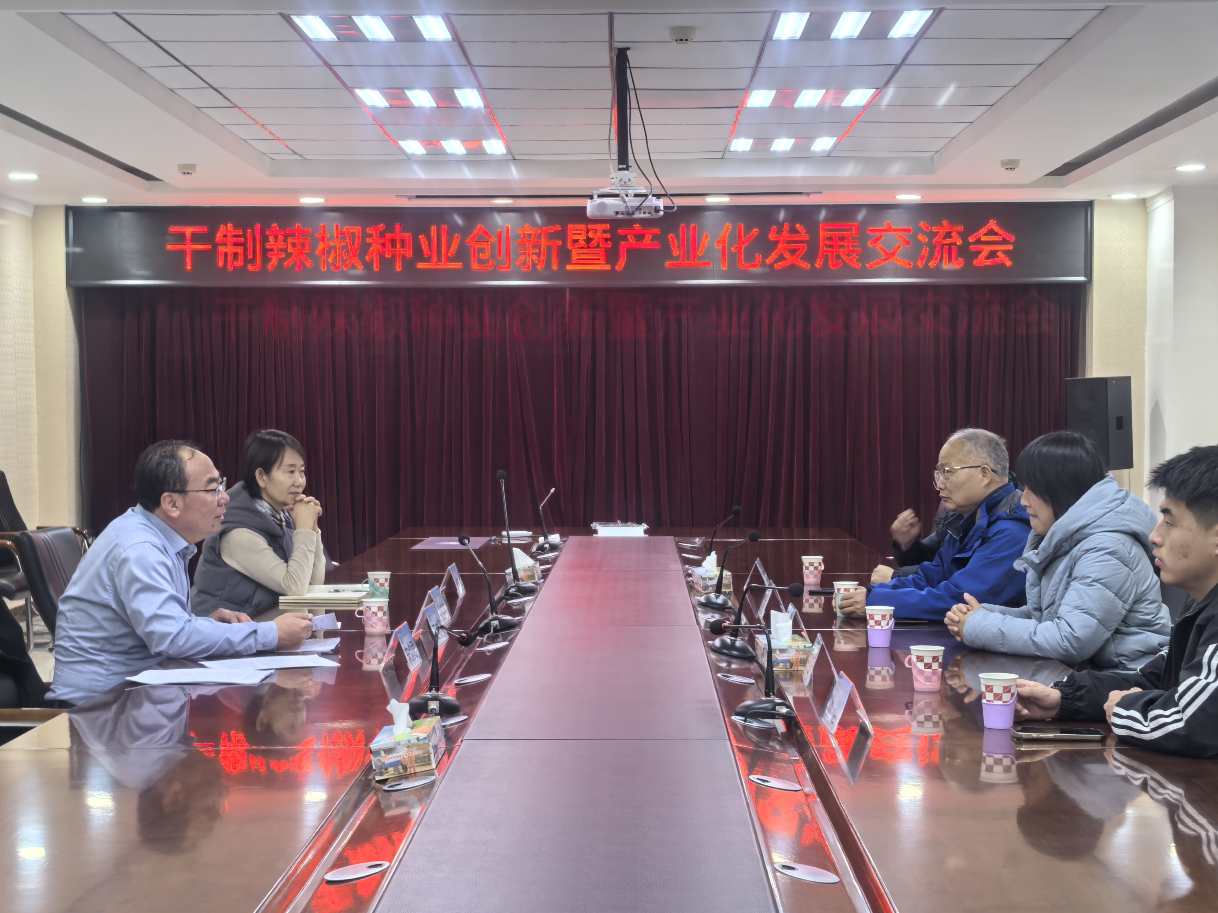 6日上午,团队抵达巴彦淖尔市农牧业科学研究所,与副所长张晓虹、特色作物研究中心主任卫志刚等专家围绕干辣椒种业创新与产业发展展开深度探讨,结合辣椒盐碱地高产栽培技术研究经验,提出“耐盐品种选育—根际微生态调控—水肥精准管理”系统解决方案,为破解产业瓶颈提供科技支撑。