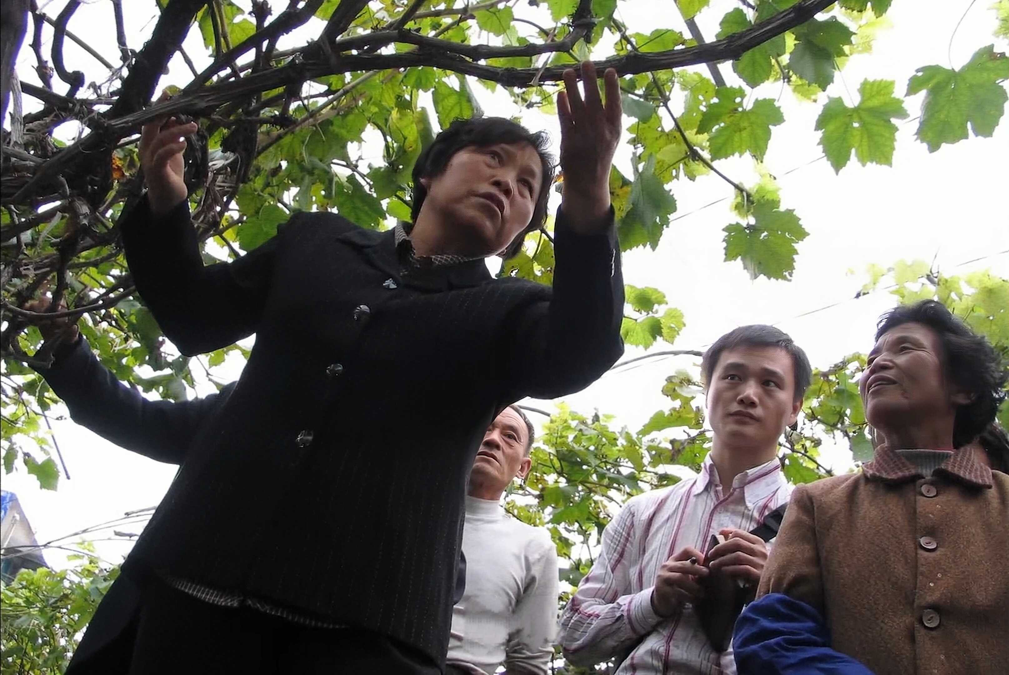 回顾40年漫漫时光长河,在不同时间里,她来回奔波,奔走在乡间田野与学校间,见到她时,她总穿着一件格子纹衬衫,或是在葡萄架下满头大汗的地指导农民疏叶疏果,或是就地拿着一块未干的水泥以地为黑板给农民教授种植技术。