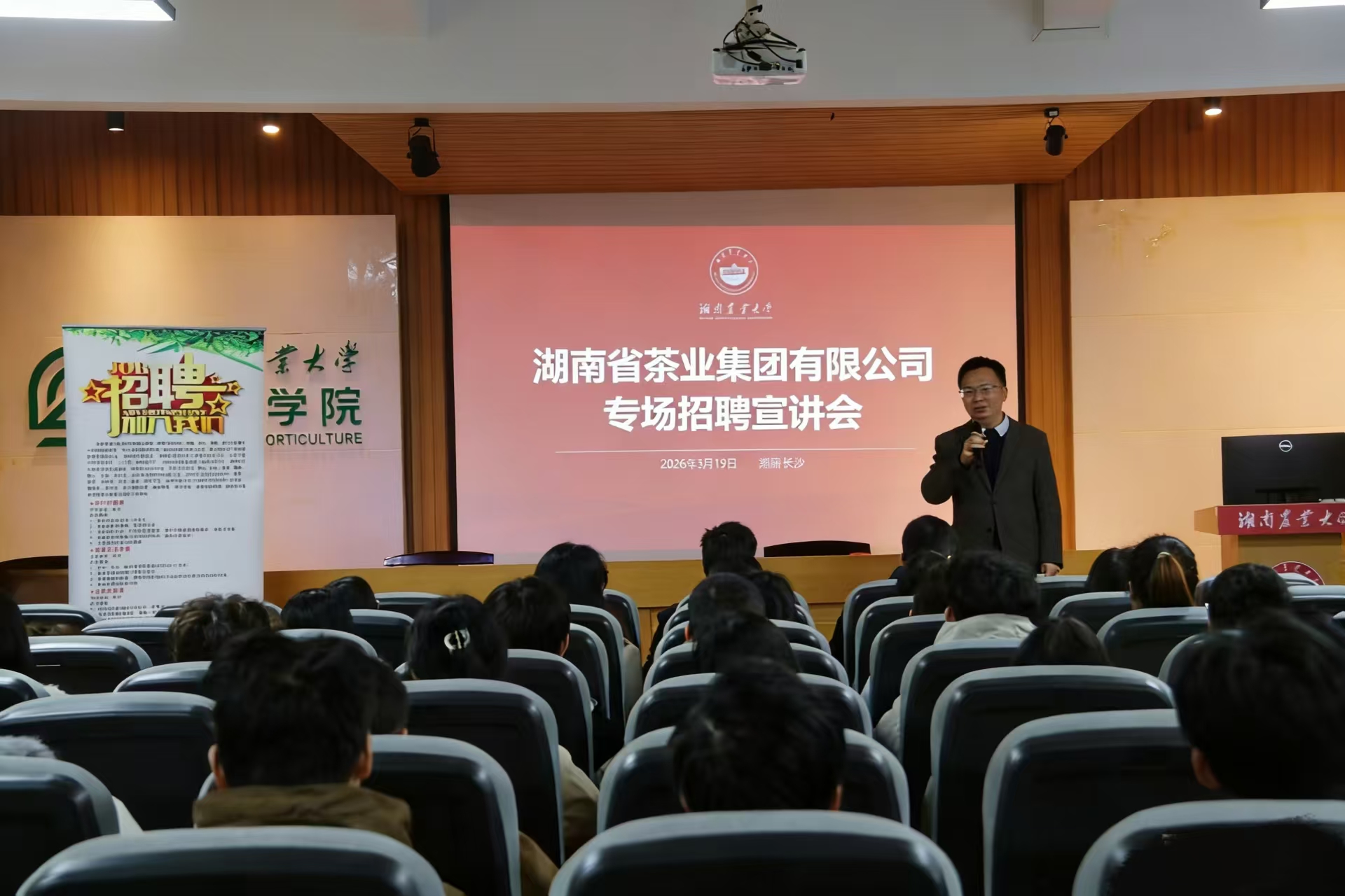 本网讯(伟德betvlctor1946源于英国 阳楠婷)为助力园艺学子明晰职业方向、拓宽优质就业渠道,学院特邀湖南省茶业集团股份有限公司走进校园,于3月19日下午在湖南农业大学第十一教学楼北539会议室举办专场宣讲招聘会。